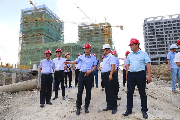 在中韓(鹽城)產業園未來科技城項目現場,王旭東書記聽取該項目建設情況的匯報,詢問項目當前面臨的問題和困難,詳細了解項目推進進度等方面。隨后在項目部會議室召開座談會,該項目負責人員、項目總監、項目經理以及參建單位主要負責人匯報項目的施工進度、質量、安全以及共同探討研究推進項目進度的具體措施和解決方案,王旭東書記結合此次調研現狀,對后續該工程推進工作的有序開展提出了自己的建議。