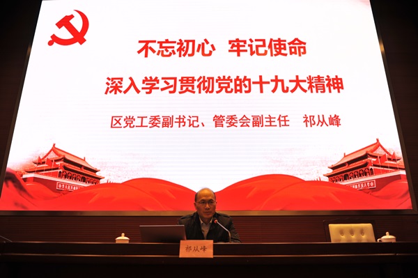 祁書記為區屬國有平臺公司東方集團、世紀新城集團員工宣講黨的十九大精神。