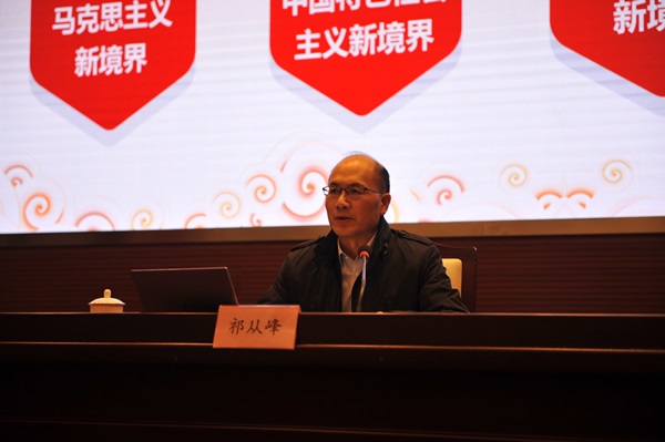在報告中,祁書記緊扣黨的十九大報告原文,綜合運用文字、圖片、視頻等新媒體形式,重點圍繞黨的十九大的主題和主要成果、習近平新時代中國特色社會主義思想、過去五年的歷史性成就和歷史性變革、中國特色社會主義進入新時代和黨的歷史使命、我國社會主要矛盾的變化、兩個一百年奮斗目標的戰略部署、我國經濟社會發展重大戰略部署、堅定不移推進全面從嚴治黨等八個方面,全面系統闡釋了十九大的精神實質和豐富內涵。