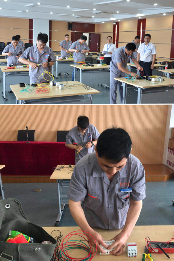 零散的工具、整捆的線路和開關......工程人員個個心靈手巧,活用賽場的每一種工具。比賽項目重重考驗著現場選手的耐心和毅力。只見每位選手都屏息凝神、專心致志。值得稱贊的是,與其說這是一場比武,倒更像是一場技能展示和成果檢驗。
