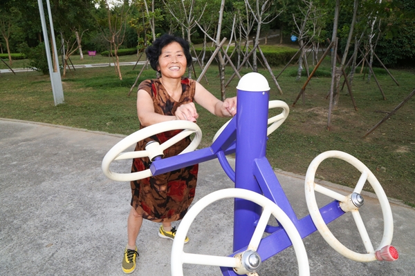 9月8日清晨,漫步鹽城經(jīng)濟技術(shù)開發(fā)區(qū)的東方公園,微風(fēng)和煦,植被茂盛、環(huán)境宜人、空氣清新,雖然才6點半,已經(jīng)有不少居民早早地來到這里晨練。跑步、健身操、太極拳、健身器械鍛煉,大家和諧相處、其樂融融。今年77歲的高奶奶家住高教公寓,從家步行到公園不到10分鐘,每天早晨5點半來這里晨練,大大增強了體質(zhì)。正在“領(lǐng)舞”的蔡書琴說:“這里空氣宜人,我每天都到這里跳健身操,半年下來已經(jīng)有近30個奶奶‘粉絲’了,每天帶領(lǐng)大家一起跳舞,不僅鍛煉身體,還增進了鄰里感情。”