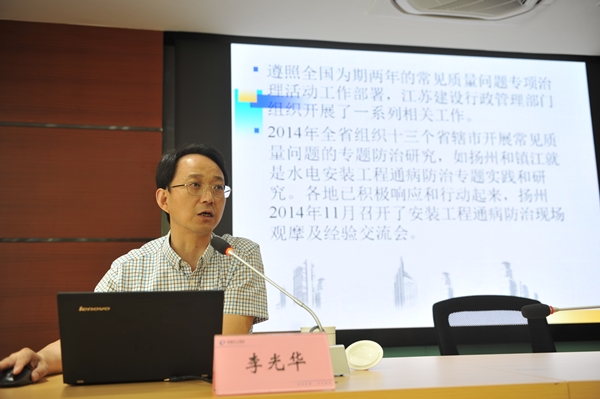 在建筑工程中,質量通病的發生會引起人們對工程質量問題的投訴,成為社會的熱點話題。李站長首先為大家介紹了《江蘇省住宅工程質量通病控制標準(DGJ32/J16-2014)》實施的背景、意義及標準組成部分。隨后從地基基礎、地下防水、混凝土結構、屋面工程等方面詳細講解質量通病及防治措施,同時向大家列舉親身經歷的相關工程設計、原材料、施工過程中所出現的各類問題和現象,條理清晰、面面俱到,闡述過程通順流暢。李站長嚴謹治學的授課方式也給大家留下了深刻的印象。