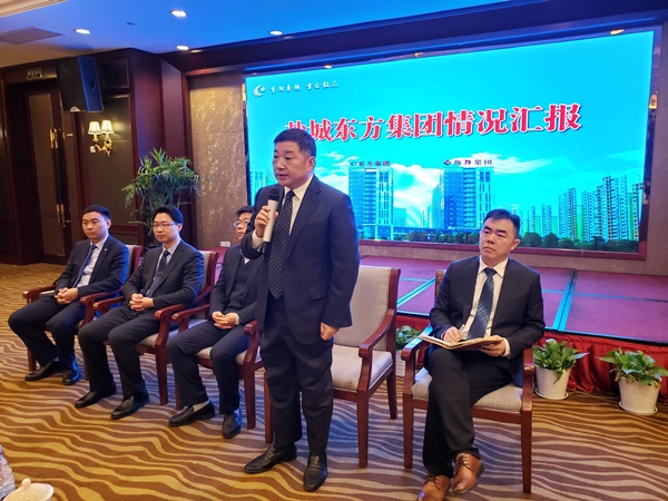 鹽城東方集團(tuán)黨委書記、董事長(zhǎng)張振國(guó)在推介中表示,近年來,鹽城東方集團(tuán)在鹽城經(jīng)開區(qū)黨工委、管委會(huì)正確領(lǐng)導(dǎo)和大力支持下,因時(shí)制宜拓展融資渠道、創(chuàng)新合作模式,先后在全市開創(chuàng)了六方面金融合作先河:第一家與外資銀行——韓國(guó)產(chǎn)業(yè)銀行合作、第一家與國(guó)家開發(fā)銀行合作、第一家與股份制銀行——華夏銀行合作、第一家與區(qū)域性外資銀行——廈門國(guó)際銀行合作、第一家發(fā)行企業(yè)債、第一家發(fā)行境外債。