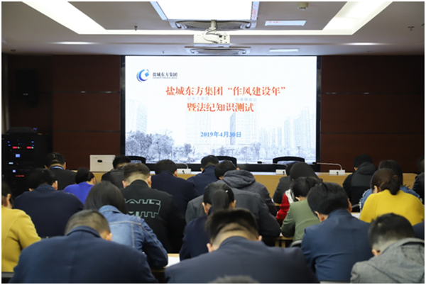 今年2月以來,全區開展了以“知責思為強擔當、知任圖進強作為、知德守正強素質”為主題的“作風建設年”活動,鹽城東方集團根據活動具體要求,積極組織、主動落實,期間召開2次專題作風效能會議傳達了區黨工委作風會議的會議精神,部署了集團作風建設工作。