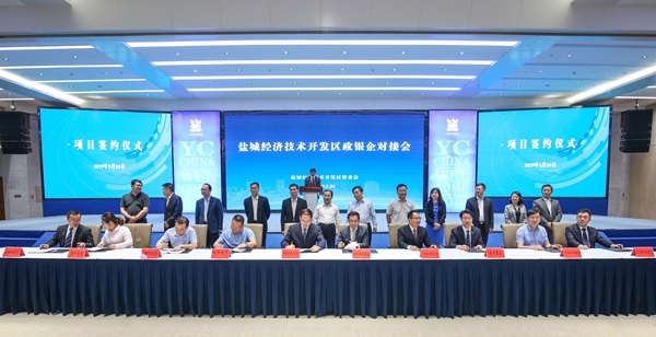 5月24日上午,鹽城經(jīng)濟(jì)技術(shù)開發(fā)區(qū)政銀企對接會在鹽城國際會展中心舉行。人民銀行、銀保監(jiān)局、市地方金融監(jiān)管局相關(guān)領(lǐng)導(dǎo),20多家省市知名金融機(jī)構(gòu)負(fù)責(zé)人參加活動。區(qū)管委會主任徐龍波作了熱情洋溢的致辭。據(jù)悉,本次會議是鹽城經(jīng)開區(qū)歷屆政銀企對接活動規(guī)模最大的一次,全區(qū)60個融資項(xiàng)目得到了各家金融機(jī)構(gòu)共計(jì)118億元的融資授信,其中鹽城東方集團(tuán)及下屬子公司分別與市、區(qū)四家金融機(jī)構(gòu)簽約。