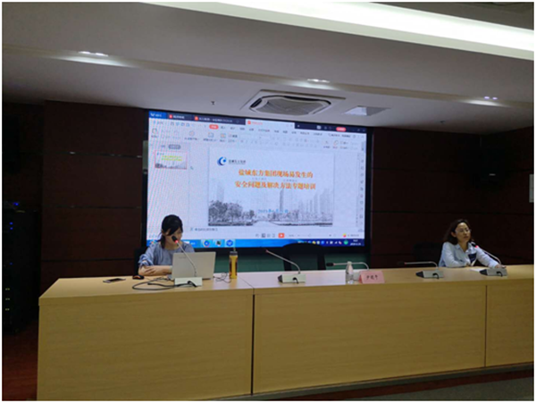 為提升東方集團工程條線人員業務知識水平,結合2019年集團安全生產月活動, 6月21日,在集團1012會議室組織開展建筑施工現場易發生的安全問題及解決方法專題培訓,鹽城工學院尹明干教授應邀授課,集團工程條線全員參加。