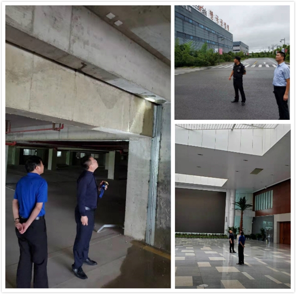 集團資產管理部頂風冒雨進行巡查,11日上午,臺風剛過市區,由集團相關領導帶隊,資產管理部兵分幾路,采取“幢幢到”的形式分別前往國際會展中心、綜合保稅區、新能源產業園、光電產業園、韓資園、漕河涇園區、步鳳汽車零部件產業園及新嘉源公寓,一一檢查資產受災情況。將檢查的情況實時通過微信工作群匯報,及時協調相關部門與單位搶修。
