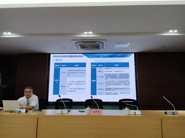 會上,梁澤泉主要通過招投標的法律法規及相關知識、招標文件主要條款及合同條款的注意事項與投訴點及相關事項(案例)等幾個方面深入淺出的講解。