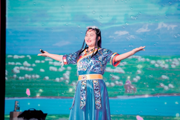 古色古香,像一彎清澈的湖水,蕩漾著中華古老風韻。蔡紅桃帶來的歌曲《龍文》,一字一句,一音一律都彰顯了華夏文明的大氣輝煌。