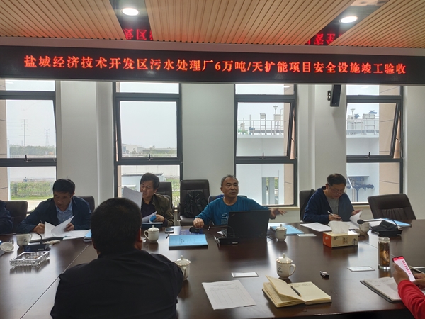 會上,沈效偉介紹了開發區污水處理廠6萬噸/天擴能工程的基本情況及安全設施的布置情況。隨后,江蘇健安安環工程評價咨詢有限公司相關負責人匯報了該項目的安全設施竣工驗收評價報告的編制情況,同時專家審閱了申報材料、圖紙,并查看了該項目現場安全設施的配備以及隱患整改情況,對江蘇東方水務有限公司的安全設施配備情況、安全隱患排查與整改情況給予了肯定。