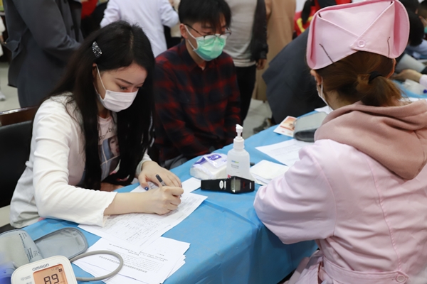 疫情阻擋不了奉獻愛心的熱情,口罩遮掩不住樂觀積極的笑容。當問起獻血理由時,大家紛紛表示要為抗擊疫情助力。“我選擇獻血400毫升!”“我也一樣,我想為社會做貢獻!”來自物業公司韓資園項目部的官碧華,祖籍在湖北省,他和家人已在鹽城工作生活10年了??吹?ldquo;動員令”后,他立即報名參加無償獻血活動,跑出了熱血接力的一棒,“醫務工作者們為我們家鄉人浴血奮戰,我也想盡一份綿薄的力量,通過獻血的方式來回報社會。”