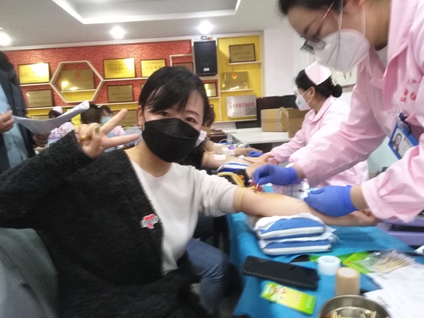 除了男士,女士獻血也很踴躍。集團資產管理部的陳才和吳霞,都是獻血超過5次的獻血達人,吳霞的獻血史長達14年,總獻血量超過3500毫升。“我大一開始至工作到現在,每年獻一次血。”東方市政的陳茂華則表示,一方有難八方支援,作為一個公民,她也想貢獻一份愛心。