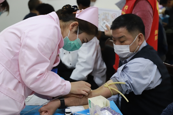 上午9點半,在陽光世紀園東門道德大講堂內,長長的獻血隊伍中,有黨員干部、團員青年和職工群眾,有第一次獻血的“新人”,也有連續多年獻血的志愿者。在工作人員的引導下有序填寫登記表、體檢、化驗、采血……