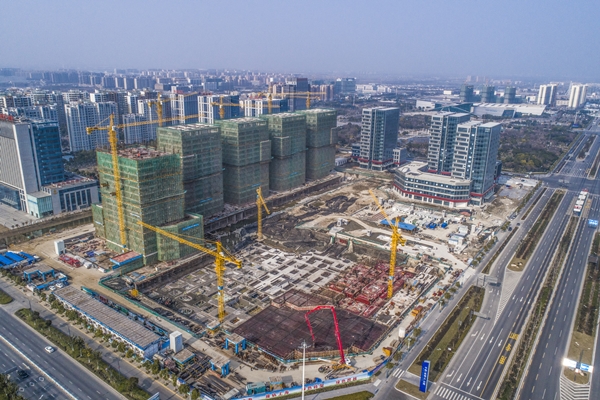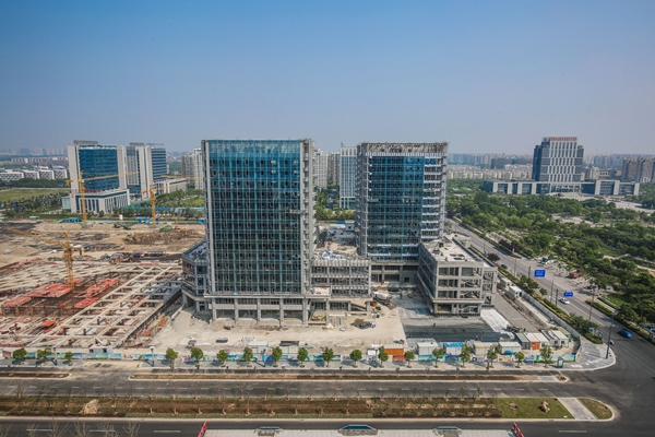 截至目前,未來科技城一期已竣工投用,吸引了基金大廈、興業銀行、黃海濕地研究院等優質單位、企業入駐;二、三期工程方面,土建、內裝、幕墻、亮化、智能化、附屬、暖通、電梯等工種全面開花、齊頭并進,力保項目如期建成交付。