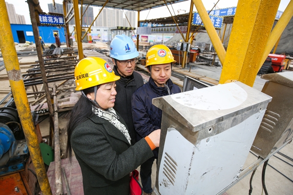 清晨6點,迎著熹微的晨光,工人們整齊地排列在安全宣講臺前,聚精會神地聆聽班組長做安全交底;下午3點,建設-施工-監理三方組織的安全小組,在工地現場巡查安全,重點檢查塔吊、吊籃、輪貨電梯、臨時用電等高危環節;下午5點,甲方項目負責人、施工項目經理、各級監理等圍坐桌前,分析當天施工中存在的安全隱患,并有針對性地制定解決方案;每周三,由集團工程部邀請的市內一流安全專家還到工地“會診把脈”,讓安全問題無處遁形……