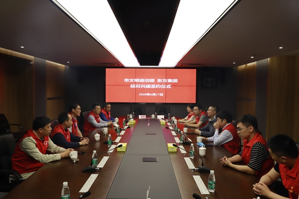 市文明尋訪團(tuán)與東方集團(tuán)結(jié)對共建簽約儀式在東方集團(tuán)7樓一號會議室舉行。市文明尋訪團(tuán)團(tuán)長肖兆玉與東方集團(tuán)黨委委員、副總經(jīng)理吳將代表雙方簽定了創(chuàng)文結(jié)對共建協(xié)議。雙方表示,將合力參與創(chuàng)文行動,以深入開展創(chuàng)建文明城市活動為抓手,同頻共振,履行好所承擔(dān)的工作任務(wù),為全面融入文明城市創(chuàng)建貢獻(xiàn)智慧和力量。