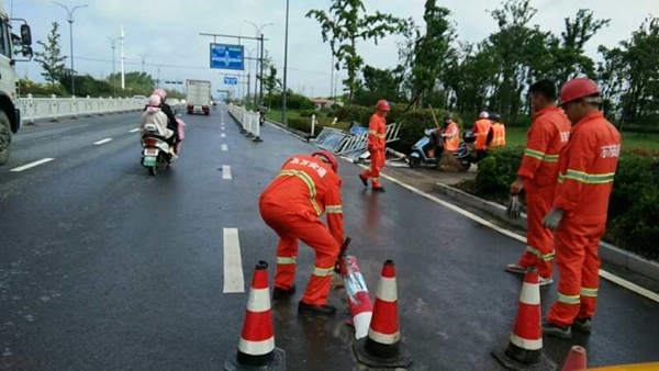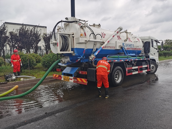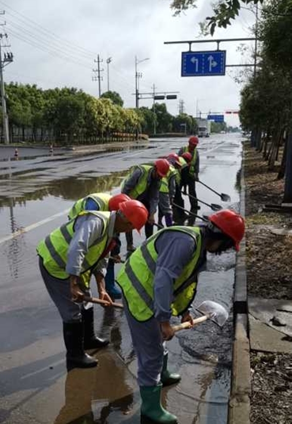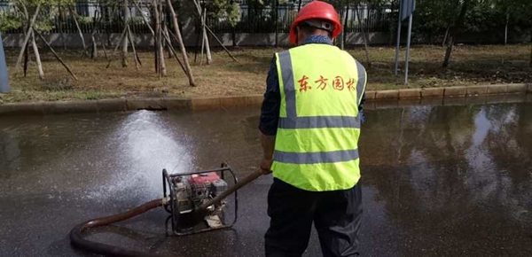 6月29日凌晨5點(diǎn),東方園林出動皮卡工程車5輛,汽油抽水泵4臺,挖機(jī)一臺。5人負(fù)責(zé)招商中心抽水排澇,23人赴鹽瀆路抽水排澇保障當(dāng)日活動,各路段84人巡查扶樹,扶樹共計137棵。