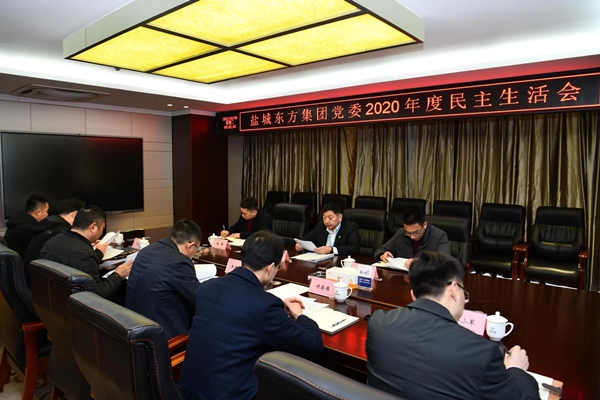 2月9日上午,鹽城東方集團領導班子召開2020年度民主生活會,會議聚焦“認真學習貫徹習近平新時代中國特色社會主義思想,加強政治建設,提高政治能力,堅守人民情懷,奪取決勝全面建成小康社會、實現第一個百年奮斗目標的偉大勝利,開啟全面建設社會主義現代化國家新征程”這一主題,聯系思想和工作實際,深入查擺問題、剖析原因,進行自我檢查、黨性分析,認真開展批評和自我批評。區組織部余雷同志、區紀工委監察工委楊錦同志到會指導。集團黨委書記張振國主持會議并講話,集團黨委委員參加。