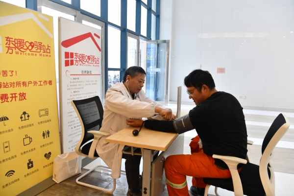 除了完善的硬件設施,驛站更注重傳遞溫暖與關愛。鹽城東方集團黨委組織志愿者開展常態化服務,近期為勞動者們送上了裝有毛巾、洗護用品的“暖心禮包”,還聯合社區衛生服務中心開展愛心義診,提供健康咨詢和疾病預防知識,把關懷送到大家心坎上。