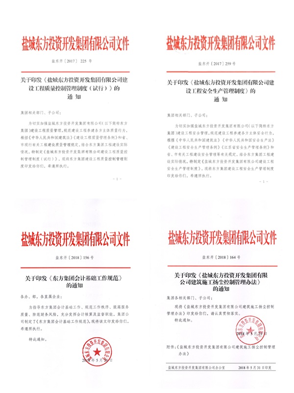 圍繞安全、質量、文明等關鍵因素,先后制定出臺《揚塵控制管理辦法》、《安全生產工作考核辦法》等多項制度,嚴格執行樣品引路制、飛行檢查制等制度,現場管理、質量控制、安全檢查等受到社會各界高度評價,北師大鹽城附屬學校、未來科技城、東方之洲等項目爭創“揚子杯”和“省文明工地”,力爭突破“魯班獎”等更高獎項。