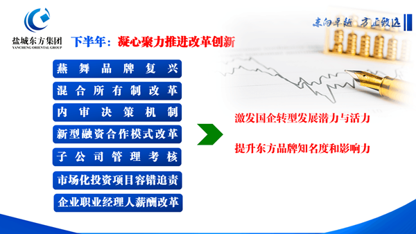 當前,鹽城東方集團正圍繞市場化投資項目容錯追責、燕舞品牌復興、混合所有制改革、企業經理人薪酬制度改革、新型融資合作模式創新等7個方面穩健推進改革,全力為改革探路、為轉型創新。